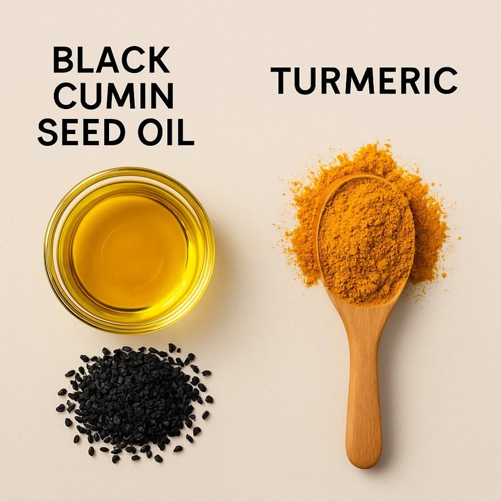 Black Cumin Seed Oil (Nigella Sativa) Turmeric (Curcumin) Black Cumin Seed Oil Thymoquinone (TQ), nigellone Antioxidant, anti-inflammatory, immunomodulator, hepatoprotective, antimicrobial Turmeric (Curcumin) Curcumin (plus demethoxycurcumin, bisdemethoxycurcumin) Potent anti-inflammatory, antioxidant, NF-κB inhibitor, cytokine modulation Black Cumin Seed Oil (Nigella sativa) ✅ Active Compound: Thymoquinone (TQ) 🧠 Mechanism of Action: 📚 Evidence-Based Benefits: Turmeric (Curcumin) ✅ Active […]