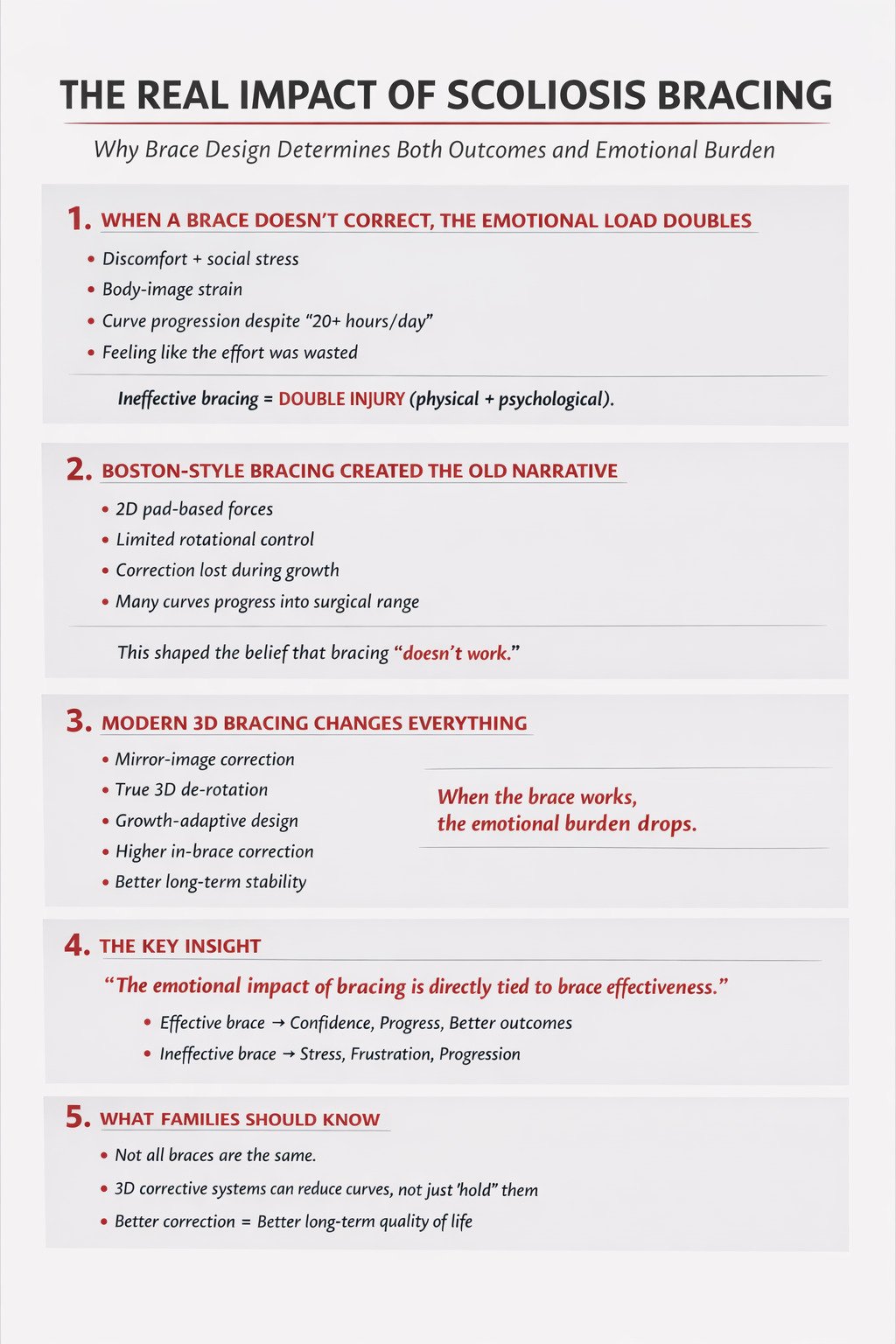 The emotional strain of bracing is not just the brace itself — it’s the futility of wearing a brace that was never designed to change the long‑term trajectory.
